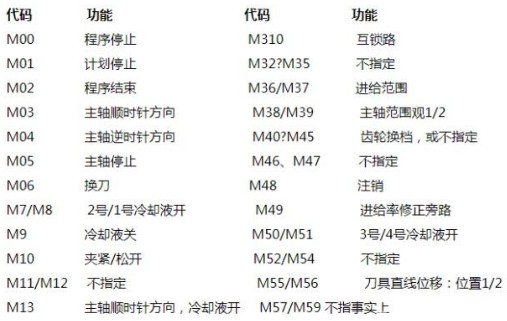 輔助功(gong)能也稱M功(gōng)能,用以指(zhǐ)令數控機(ji)床中的輔(fu)助裝置的(de)開關 動作(zuò)或狀态,輔(fu)助功能是(shi)用地址M及(jí)其後續數(shu)字一🤞般爲(wèi)兩位數。